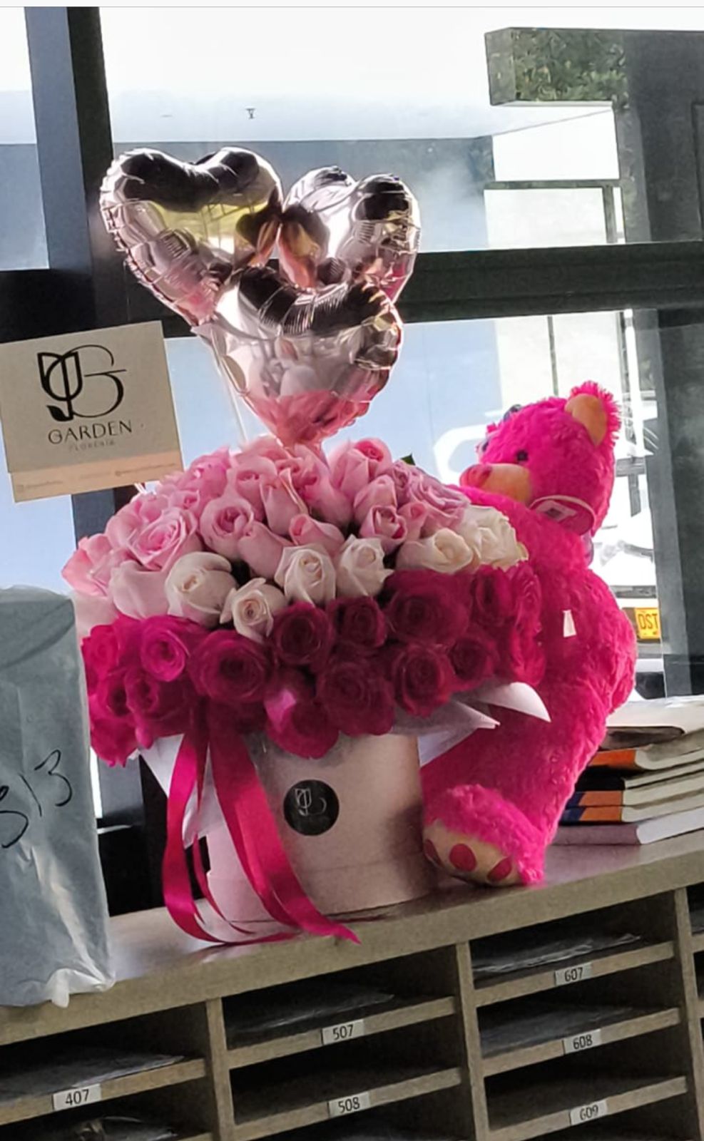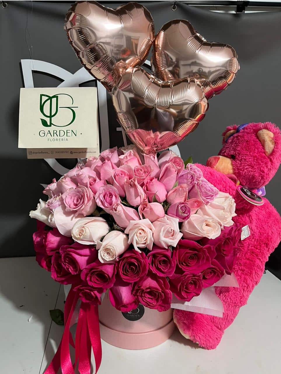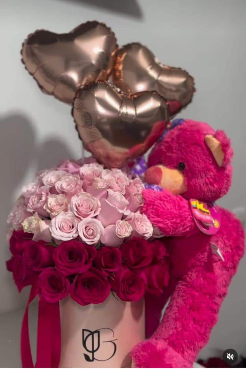 Diseño personalizado de hongo 360° en rosas dos tonos tipo exportación – Peluche y 3 Globitos metalizados